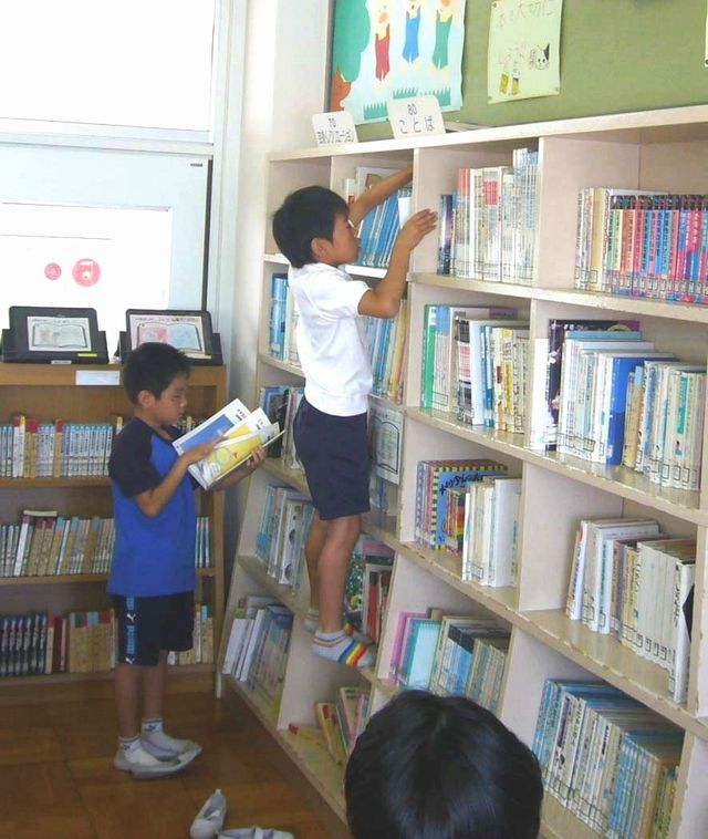 とある小学校の図書館の改修設計させていただいた時、利用状況を見にいくと、こういう子どもを発見。男の子は好奇心が強いから手が届かないところが気になるんですね。しかし、これはあまり感心出来る状況ではありません(笑)