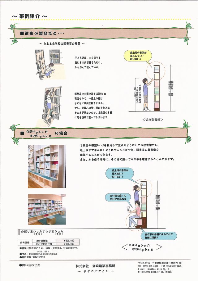 これをはじめから作ってしまえば便利ではないかと、商品化を考えました。これがそのために作ったパンフレット(表紙)です。商品名は「のぼりまショカ すわりまショカ」