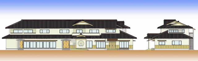 黒い瓦が合わないような気がしたので、グレーの瓦にしてみました。会館のほうも瓦屋根にしました(前の案は鋼板葺き)。こちらのほうがいいと思ったので、こちらに決定しました。
