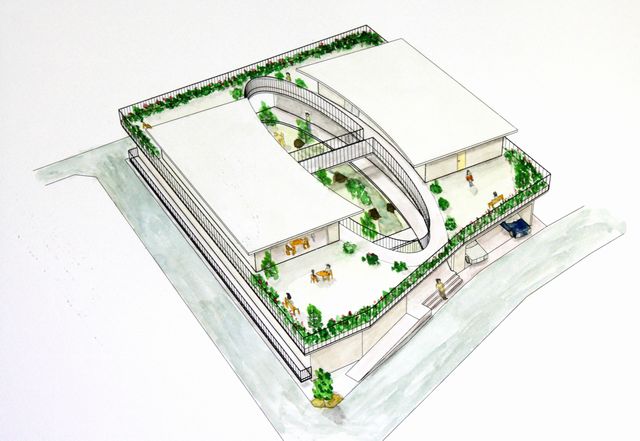 こちらはB案。木造でA案と比べて、予算を抑えたプランです。敷地にある既存の建物を移設、再利用することも視野に入れています。