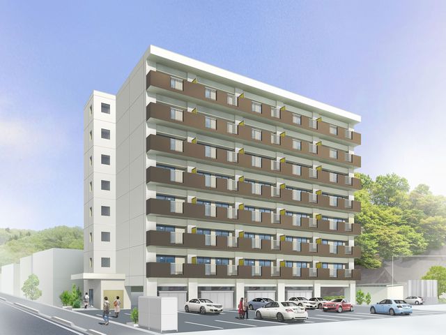 災害公営住宅の色彩計画をするために、簡単なパースを作成しました。CADで下絵を描いて、フォトショップで着色しました。