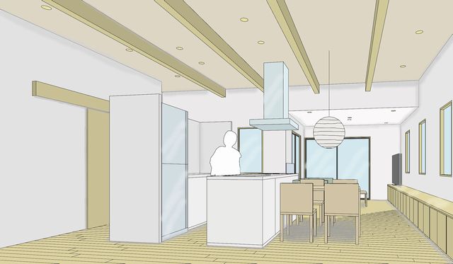 こちらは内観パースです。 LDKの様子を表現しています。 こちらも同様の方法で描きました。 小物や備品などはありませんが、やはりある程度、雰囲気は伝わるのではないかと思います。