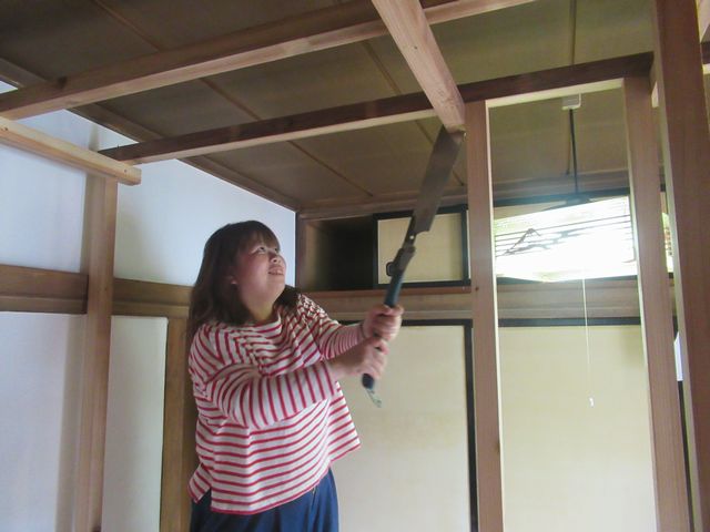つなぎを入れて、長すぎたところを切っています。Aさんはこれまで木工などの経験はありませんでしたが、丸ノコも手ノコも使えるようになりました。情熱があればなんでも出来るものですね