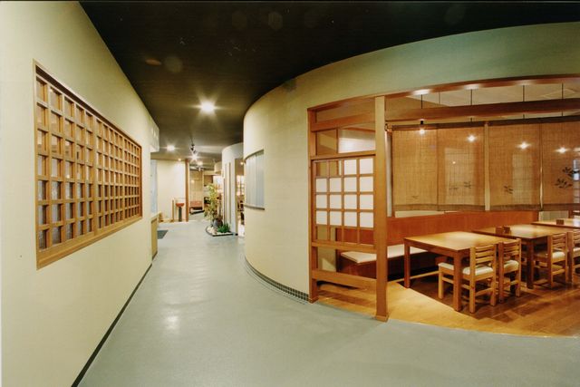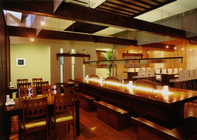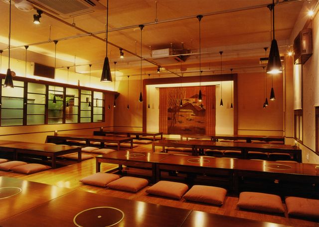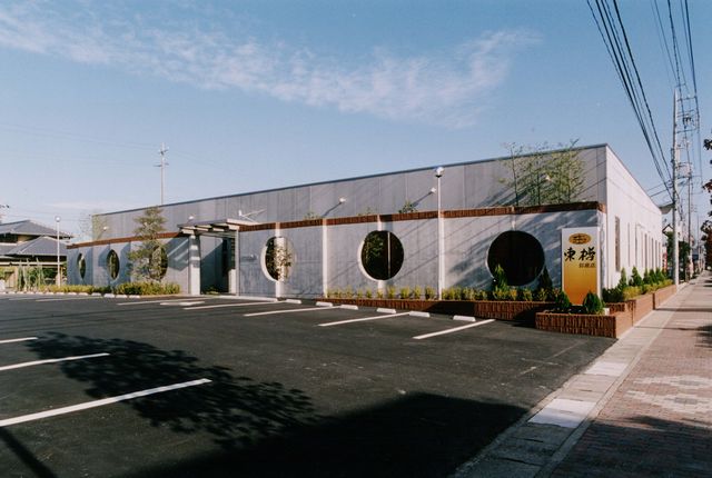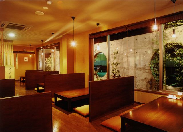 元は赤ちゃんデパートだった建物を、居酒屋に改修しました。スケルトンにしているので、ほとんど前のお店の痕跡はありません。前面の丸い穴があいたコンクリートの壁は新設です。