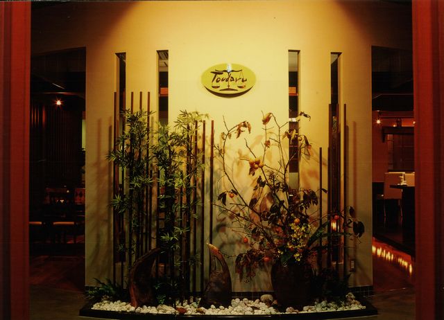 入って正面にある坪庭のようなものです。花や樹木で、季節の飾りをアレンジしています。