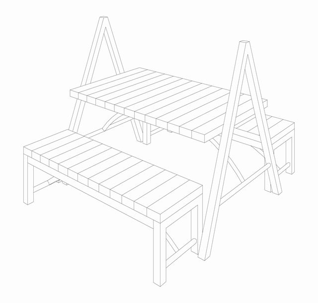 悩んだ挙句、このようなデザインを思いつきました。木材は釜石で生産量の多い杉の無垢材を使用し、補強のためにアーチ状にスチールを使います。テーブルのほうは斜め横から見ると、ロゴマークのように見えます。ベンチも同じようなデザインとしました。なお、風が強いところなので、飛ばされないように重量のあるものという希望もありました。