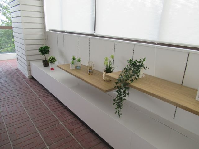 もともとあった棚柱とブラケットを活用し、棚板だけ木製にしました。観葉植物がセンス良く並べられたことで、ナチュラルで清潔感がある雰囲気になりましたね。