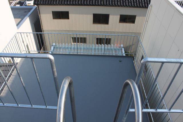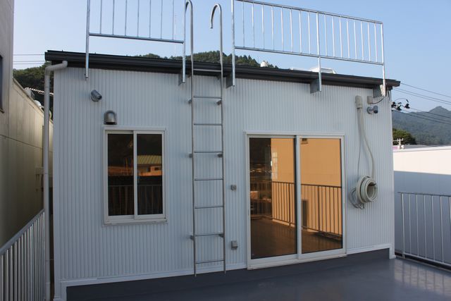 3階には屋上広場があり、さらに3階の屋根の上にもあがれるタラップがあります。津波の浸水区域であるため、津波から万が一逃げ遅れた時、避難出来るための措置です。