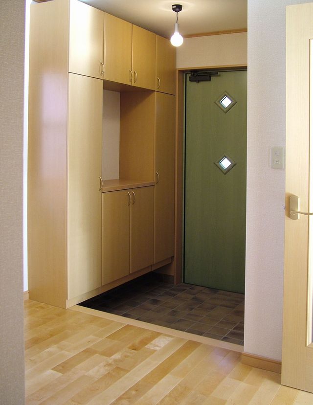 玄関です。ナチュラルで明るい木の色を基調にしています。