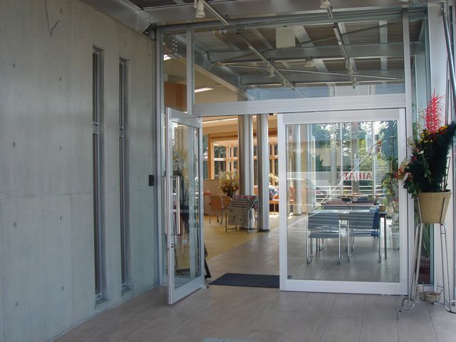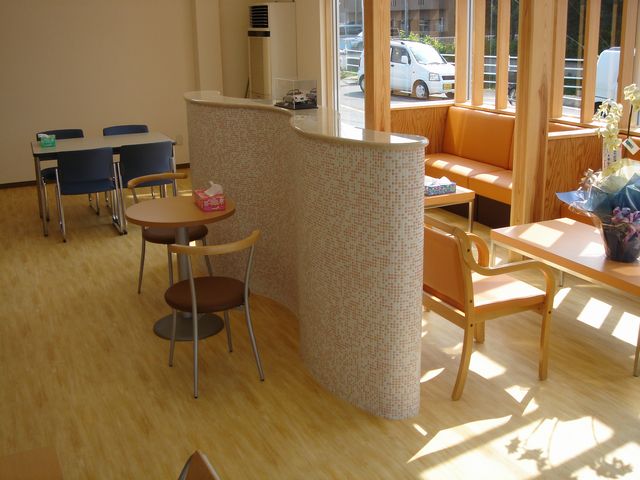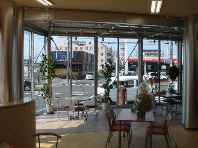 内部から、増築部分を見たところです。前面の道路がよく見えて、オープンカフェのような雰囲気でもあります。