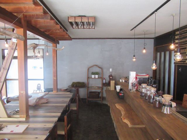 釜石大観音仲見世のsofo cafeをリノベーションしました。この事業は、当社の宮崎達也が共同代表をつとめる合同会社sofoの直営事業です。設計と工事の手配、そしてDIYで自ら工事も行った事例になります。写真左の筋違いと柱は、大工に頼みましたが、テーブルはDIYで作りました。